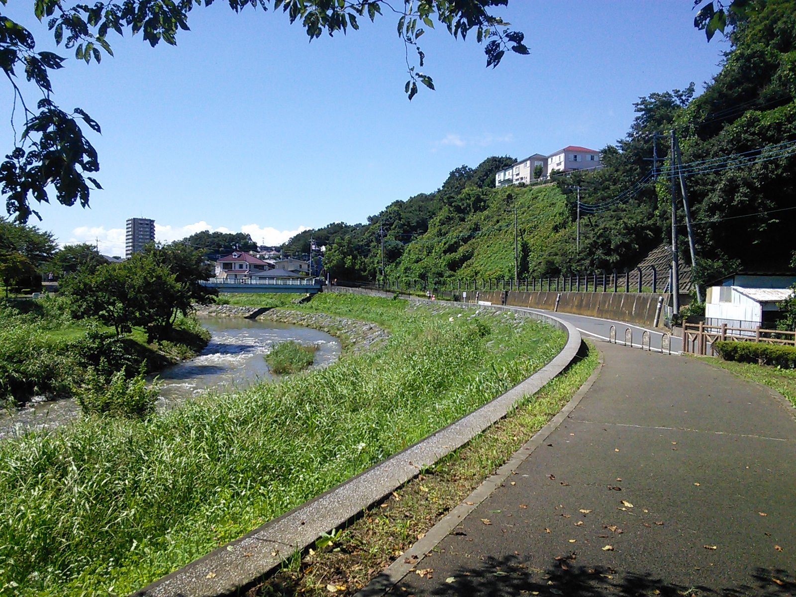 金山緑地公園を抜けると、川と宅地の間の遊歩道になっています。