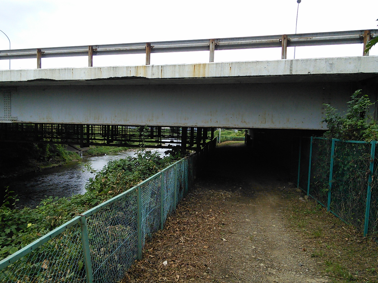 橋の下は通れないので、一度、車道に上がる必要があります。