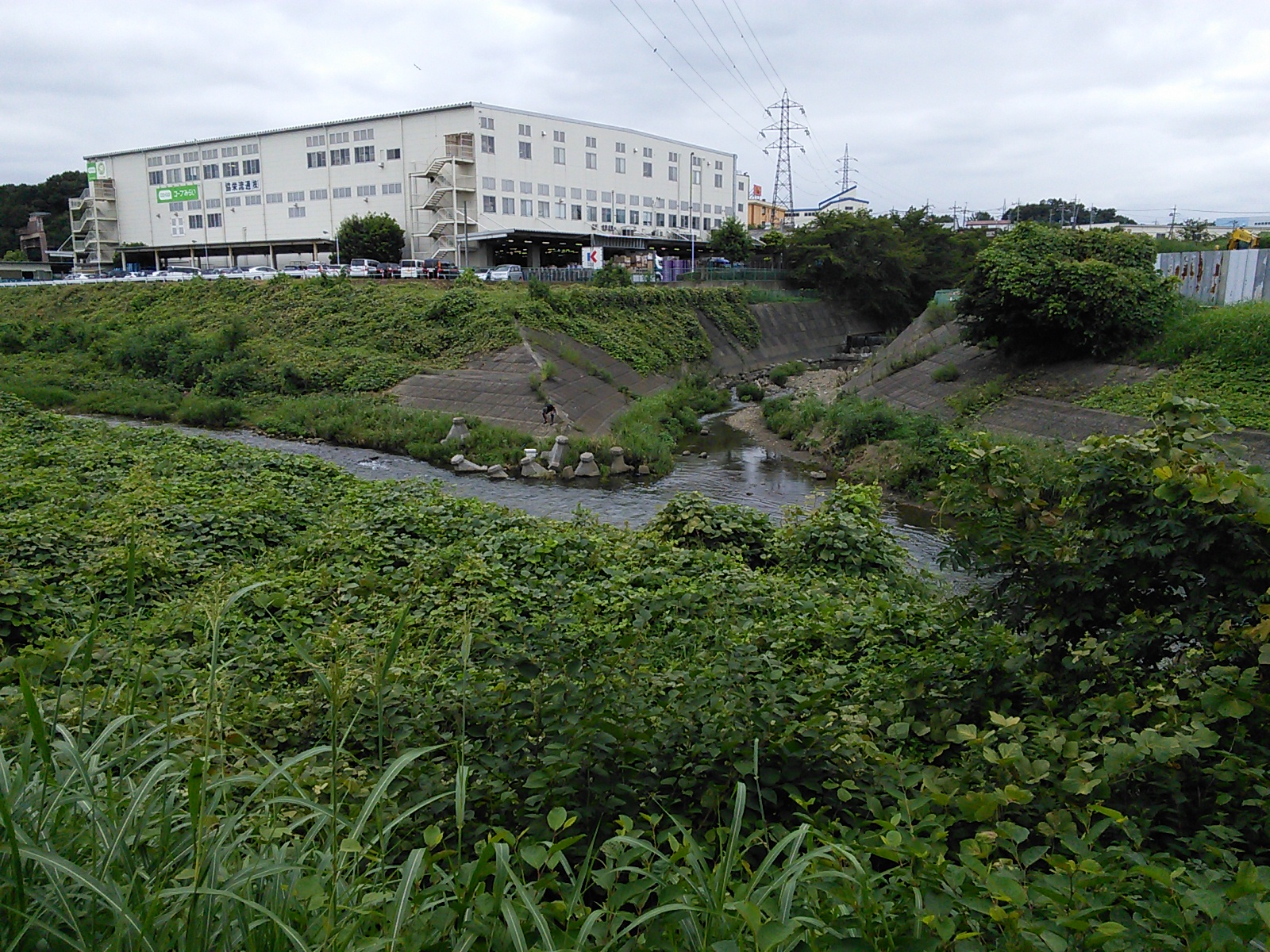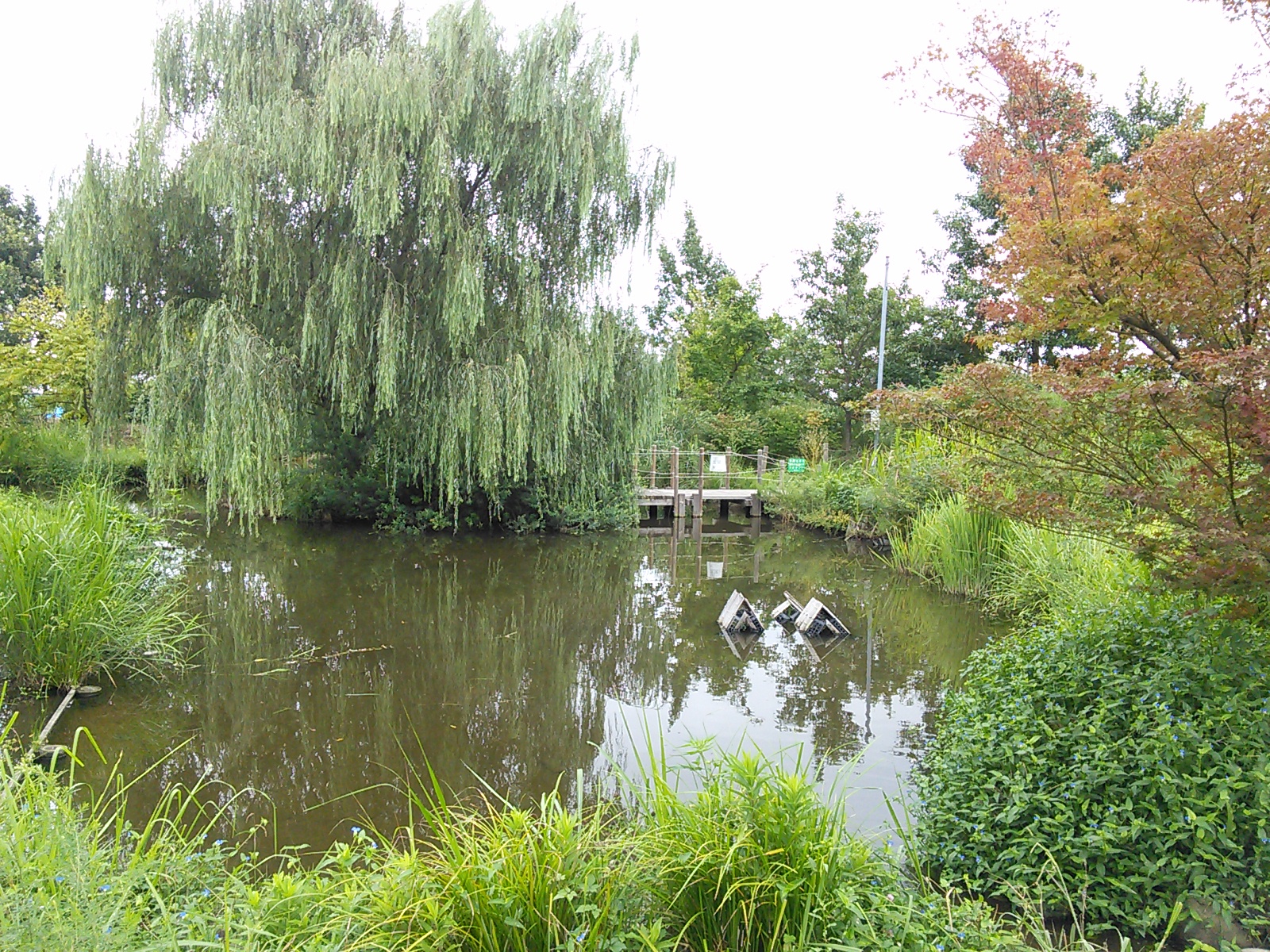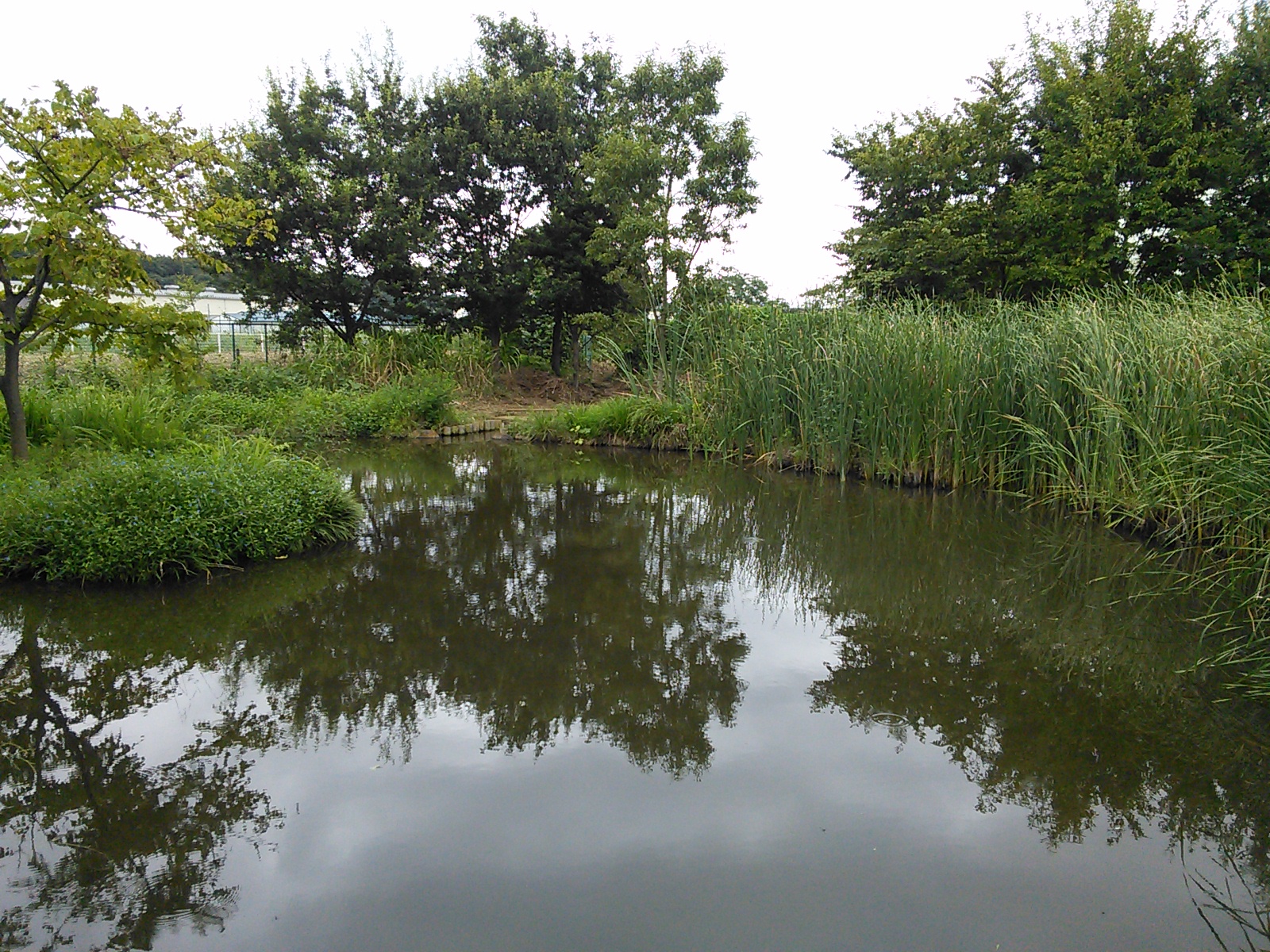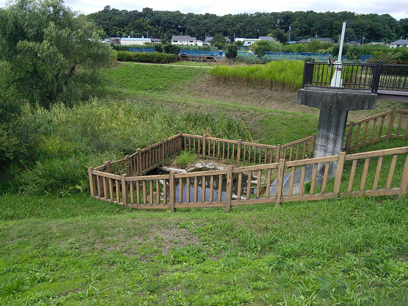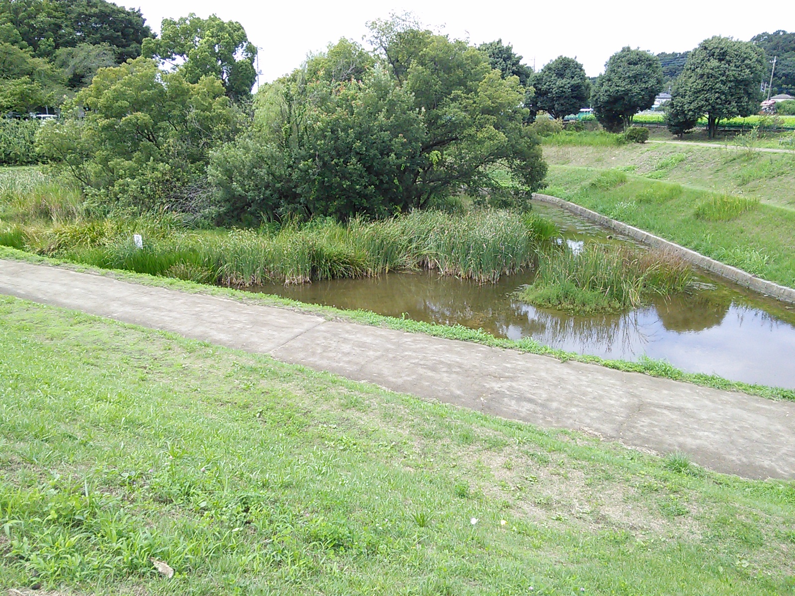 土手の上から調節池の一部がよく見えます。